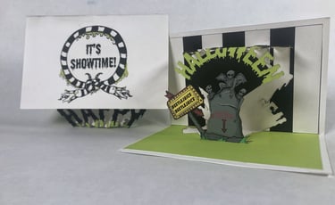 For this project I wanted to combine two of the classes I was taking at the Meyers School of Art : Printmaking & Pop-up books. Therefore I decided to make a Halloween card by applying the skills I learned in pop-up class. The card is made by ink jetting the background and then laser cutting out the pop up. That was then taken to the letterpress and the outside detail was printed on with black and green ink that I mixed to match the inside colors. The outside illustration is my own.